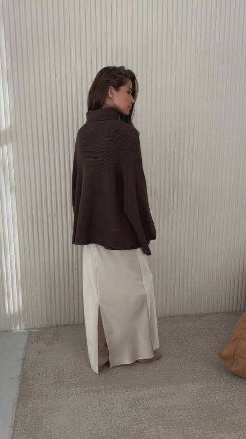 Dark EspressoAmelie is a modern relaxed fit sweater in our signature super soft yarn. On trend shape with soft roll neck for easy-to-wear chic this season. An easy way to elevate a casual look - team with a slip dress, denim or soft tailoring for a polished look.