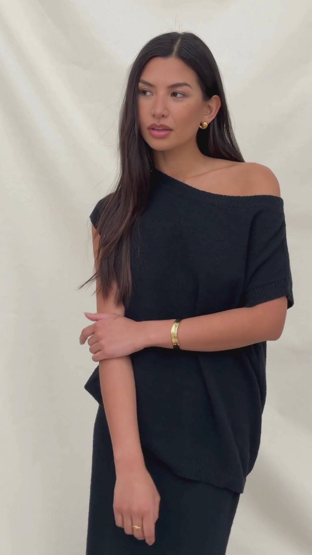 The textured cotton bouclé knit offers a touch of subtle sophistication. Wear off the shoulder for styling versatility. Relaxed fit top that you will keep coming back to all season long