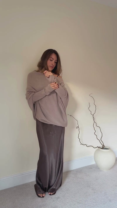 Elevated seasonal staple and modern wardrobe essential made in a super soft knit. Wear off the shoulder or as a boat-neck for versatile options. Team with the Natalie jumpsuit or Alena satin dress in matching colour to dress up or with denim for a relaxed but polished off-duty look